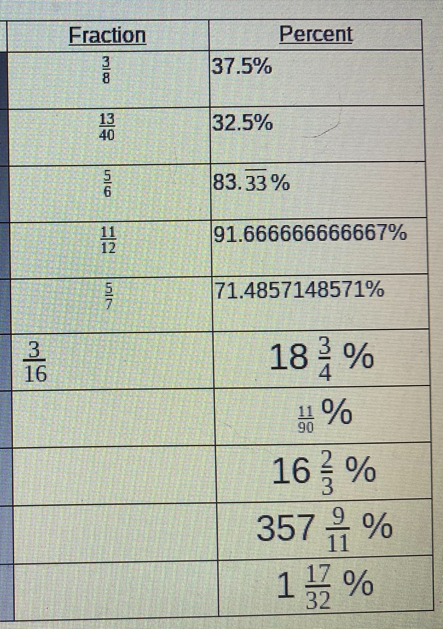 Using this formula any percentage can be converted into a fraction.
